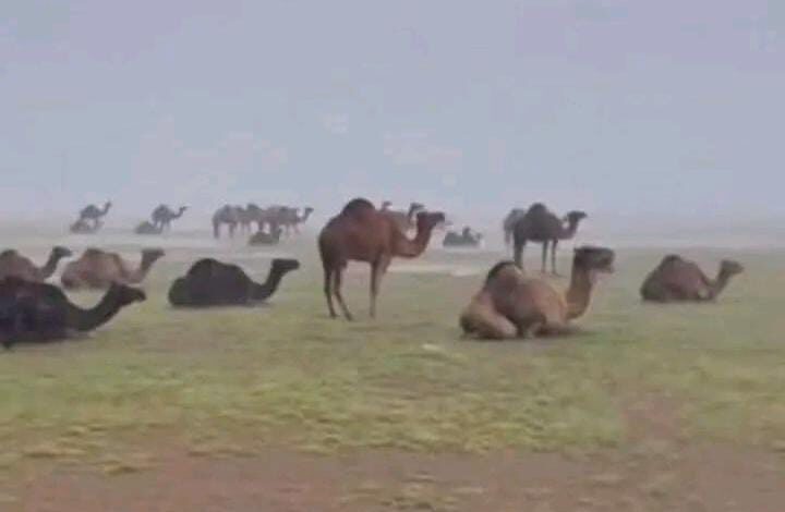 المطر يساعد في غسل الأتربة والغبار العالق بجلد الإبل.